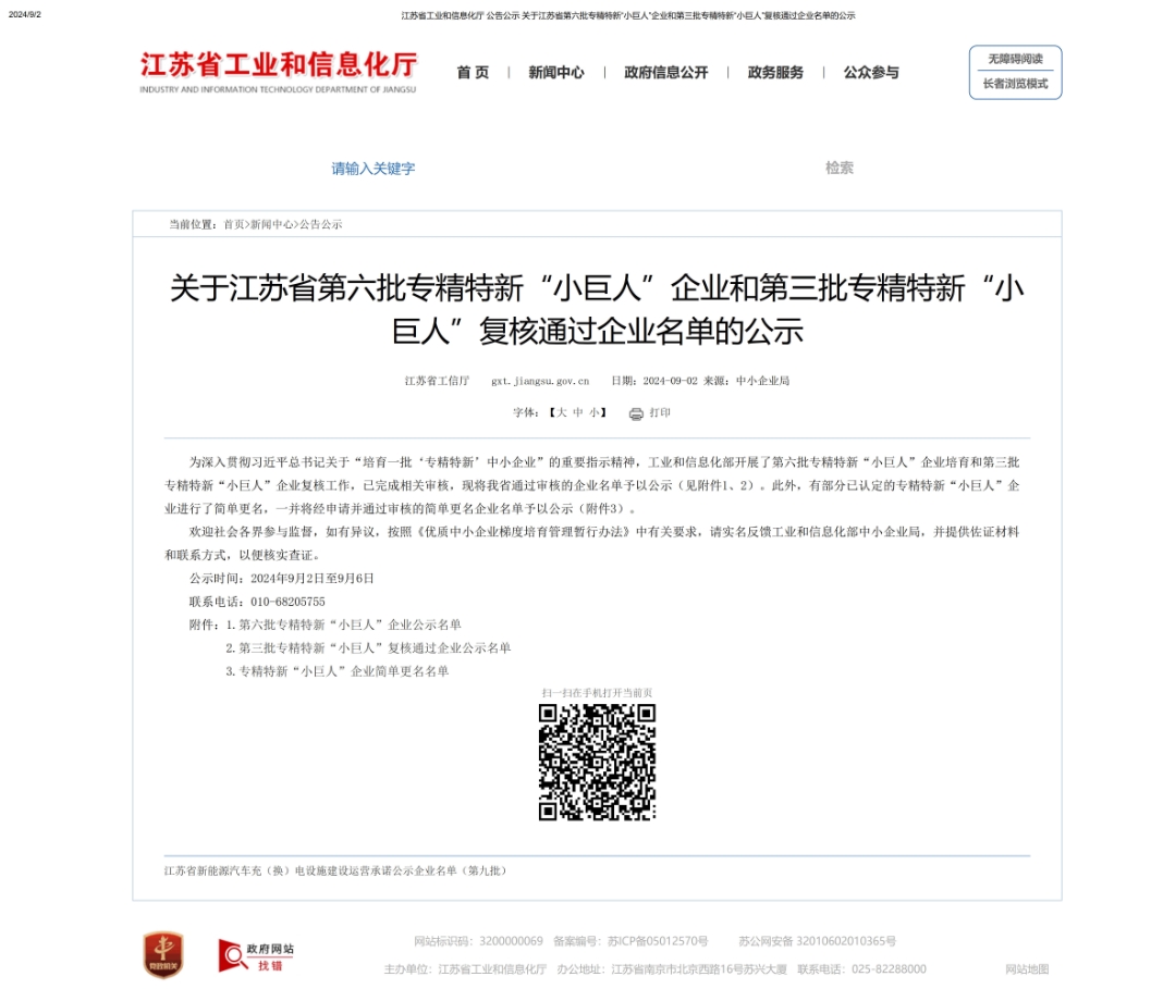 近日,江蘇省工業(yè)和信息化廳發(fā)布了《關(guān)于江蘇省第六批專精特新“小巨人”企業(yè)和第三批專精特新“小巨人”復(fù)核通過(guò)企業(yè)名單的公示》,南京試劑已通過(guò)審核,入選第六批國(guó)家級(jí)專精特新“小巨人”企業(yè)。